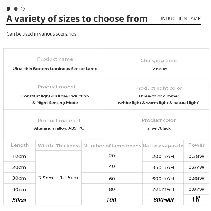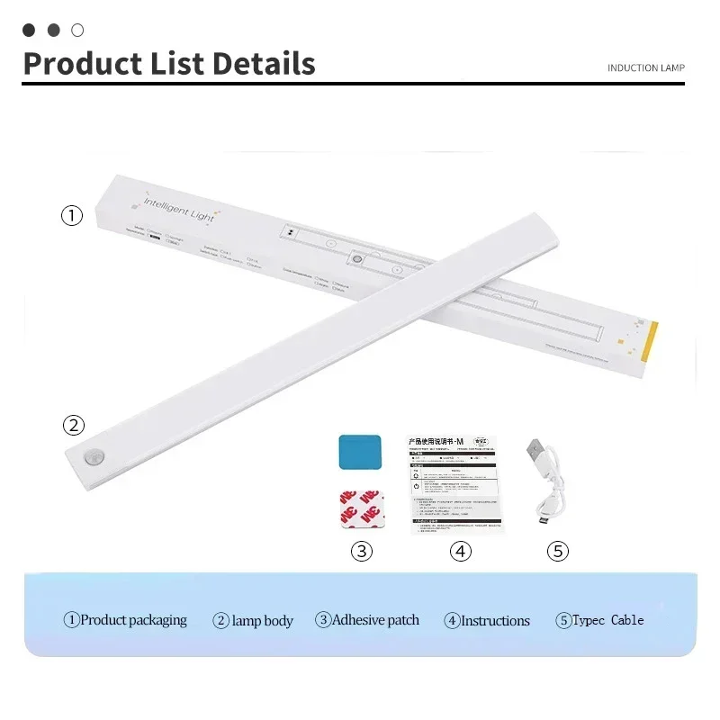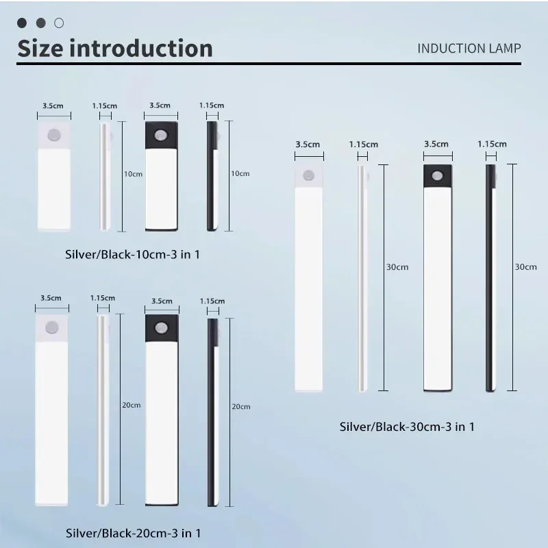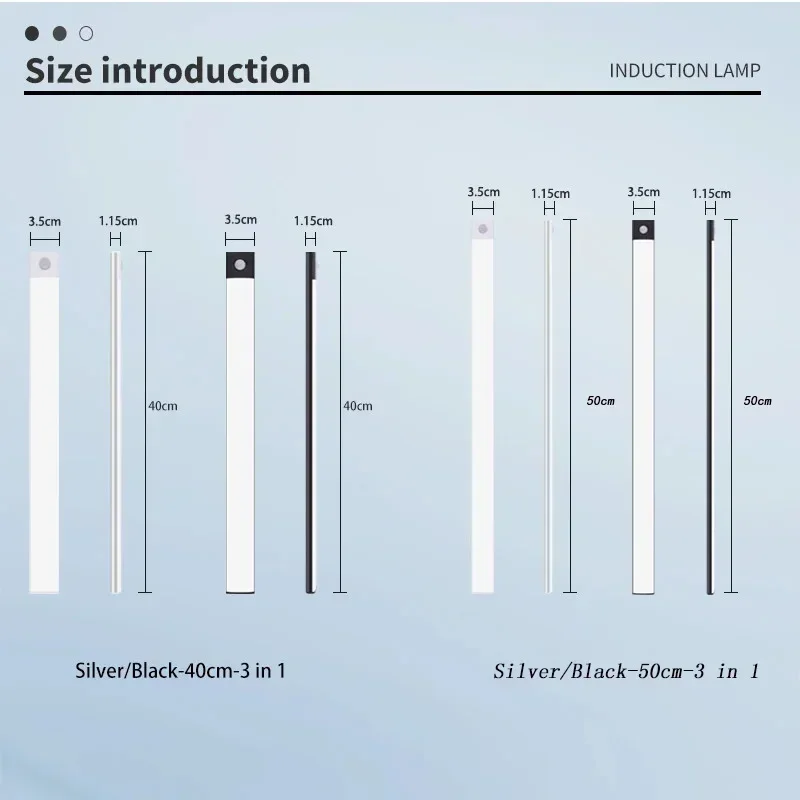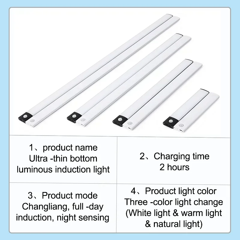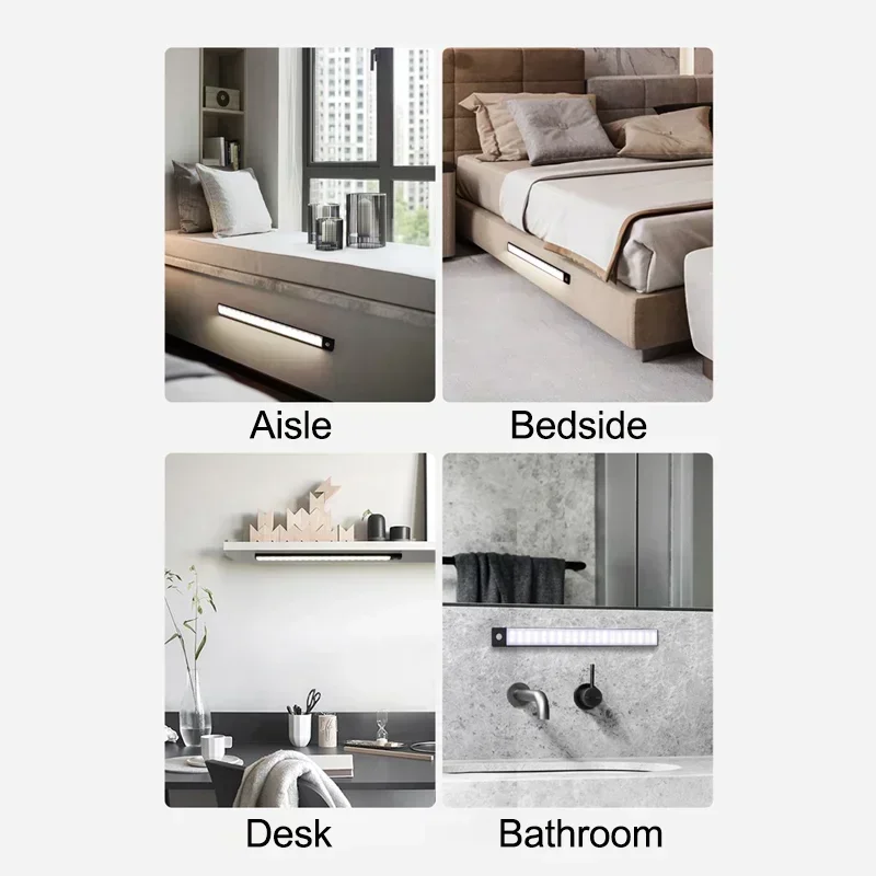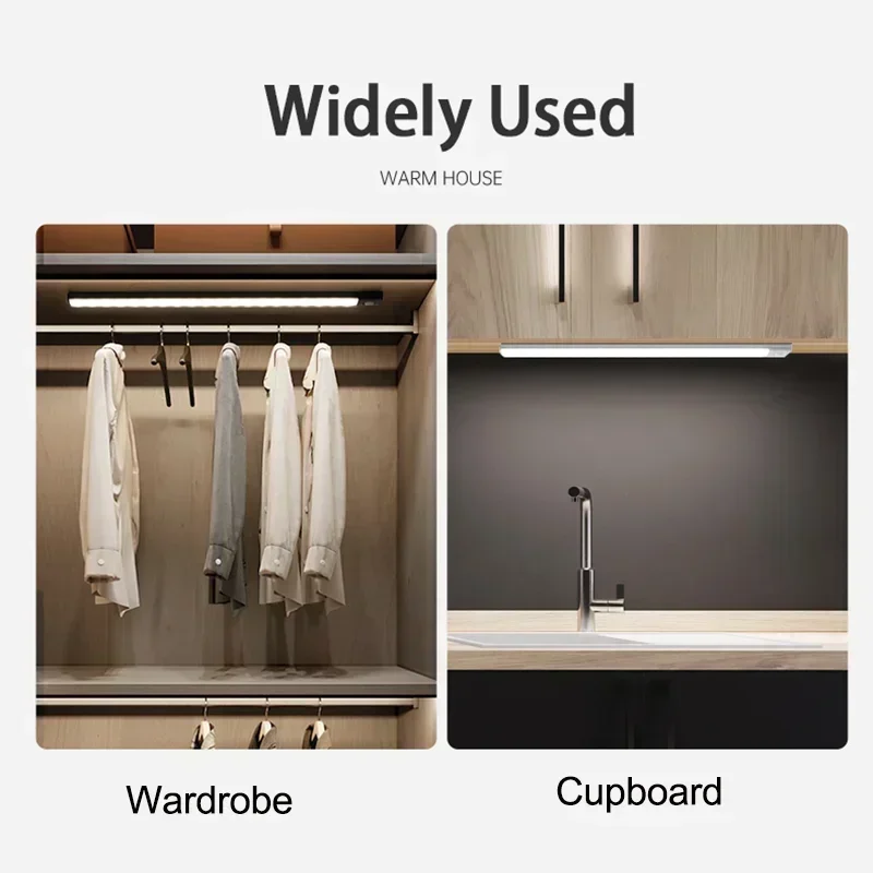 10-60cm Motion Sensor Under Cabinet Lights Wireless LED Night Light USB Rechargeable Ultra Thin Indoor Closet Kitchen Lighting